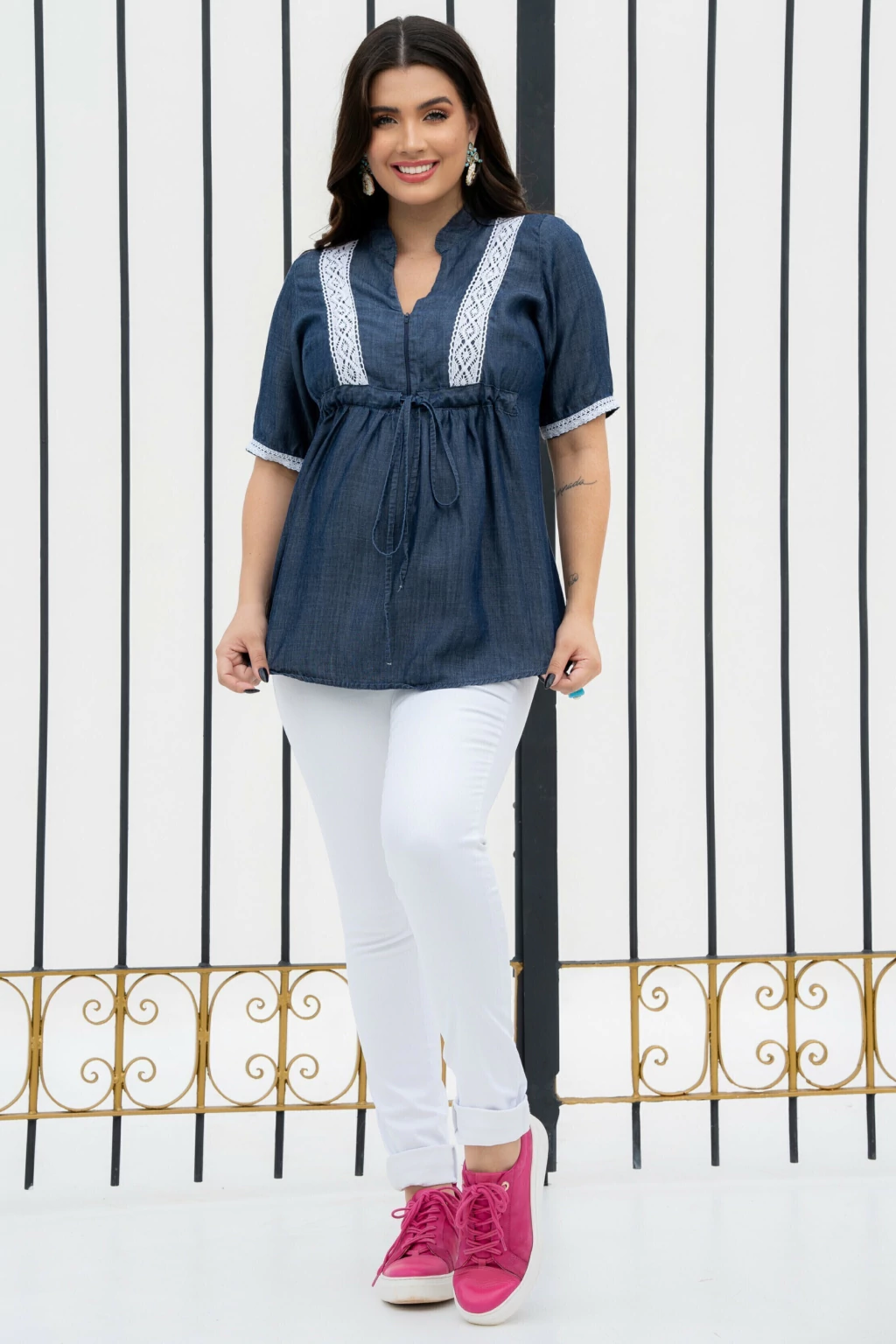 Disponível na cor azul escuro, a Bata Gestante Ajuste Denim é a escolha perfeita para as mamães que buscam unir estilo e conforto. Não perca a oportunidade de ter essa peça curinga no seu guarda-roupa!